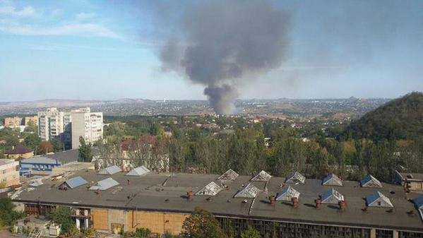 Огромный столб черного дыма поднялся в Киевском районе Донецка.