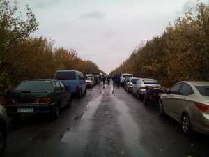 “Сегодня вернулась подруга из Киева. Говорит, что за год мытарств через бп, такого еще не видела. Проскочили только по льготной очереди с беременной на борту. А выехать из рЫспублики, даже по льготной очереди, не реально. В три ряда до Горловки стоят машины, встречка ехала по кромке”, - комментируют дончане.