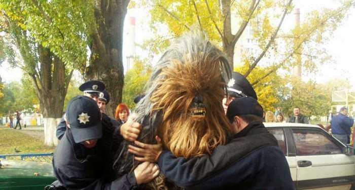 Очевидцы задержания одного из членов команды Дарта Вейдера – Чубакки выложили в Сеть видеозапись его задержания.