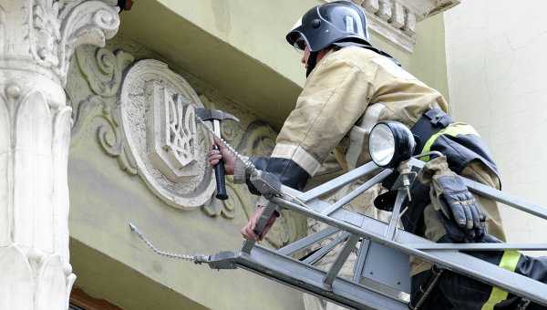 Отмечается, что охрана здания компании "Вода Донбасса" обратилась в так называемую "полицию" ДНР, однако "полицейские", прибыв на место, не стали мешать демонтажу украинских гербов.