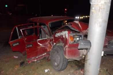 После столкновения с маршруткой, "ВАЗ" врезался в электроопору.