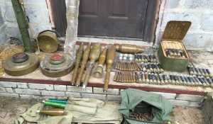 Из нее изъяли две термобарические гранаты ТБГ-7В, которые есть на вооружении исключительно Вооруженных сил Российской Федерации, девяносто выстрелов к автоматическому гранатомету, девять выстрелов к противотанкового гранатомета, три заряда к станковой противотанкового гранатомета, две противотанковые мины и одну противопехотную. Также обнаружили пороховой заряд к пушке и большое количество патронов различного калибра.