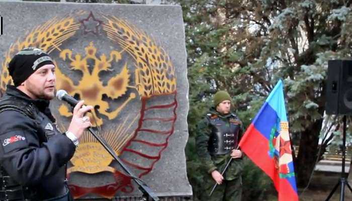 Российские байкеры «Ночные волки» снова выделились. Члены мото-организации установили в центре Луганска памятник – «Символ России глазами «Ночных волков».