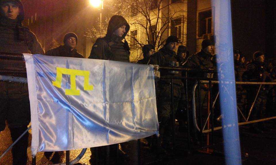 С 19-00 под Администрацией Президента собираются митингующие, преимущественно крымские татары, с целью обратить внимание на бесчинства, что сейчас продолжаются в Чаплинке.