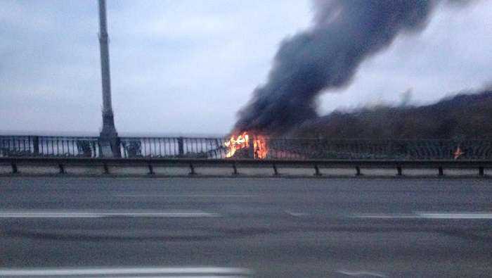 В Киеве горит ресторан на воде под названием «Веранда». Пожар настолько сильный, что столб дыма закрыл памятник «Родина-мать». На место происшествия направлены спасатели.