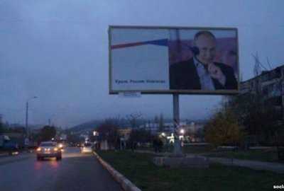В Феодосии билборд с портретом президента России Владимира Путина забрызгали черной краской.