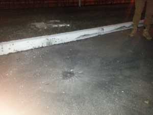 Взрыв повредил асфальт и оставил в нем воронку, пострадали три человека, при этом не сообщается степень тяжести ранений. Также от осколков взорвавшейся гранаты был поврежден стоящий автомобиль.