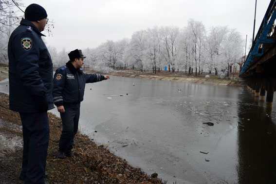 Установлено, что около 3 часов ночи по городскому парку Димитрова гуляла компания молодых людей. Они употребляли спиртные напитки. Находясь на мосту, один из парней решил пройтись по перилам. Перила оказались обледеневшие, парень соскользнул в воду. Его нетрезвые товарищи из своих вещей связали своеобразную веревку и пытались помочь другу выбраться из воды, но ничего не получалось, и тогда они позвонили в полицию. На место происшествия немедленно прибыла ГБР.