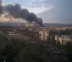 В социальных сетях киевляне пишут, что черный дым от пожара был виден на несколько километров. В помещения=х СТО горели легковоспламеняющиеся материалы.