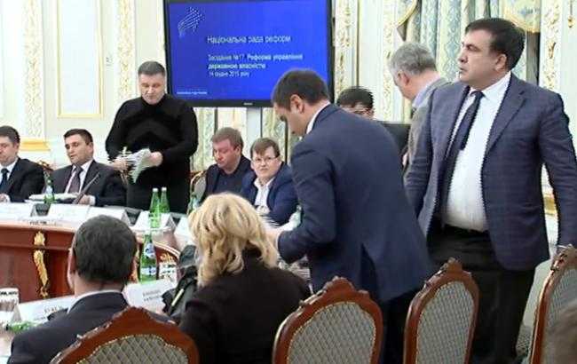 Министр внутренних дел Украины Арсений Аваков обнародовал видео конфликта с председателем Одесской ОГА Михаилом Саакашвили, который состоялся 14 декабря в ходе заседания Национального совета реформ.