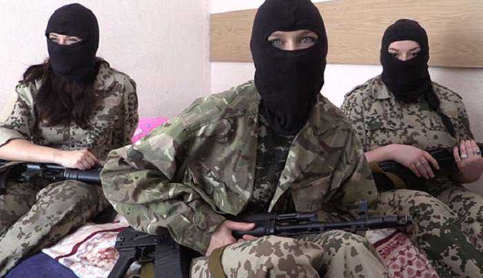 Сообщается, что данный женский батальон сформирован еще летом прошлого года на основе шахтной охраны «Краснодонугля», после издания соответствующего приказа руководством боевиков Донбасса он вошел в состав 4 бригады НМ.