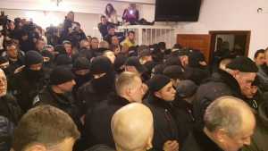Когда беспорядки в зале суда переросли в большую давку и драку, за дело взялись правоохранители, дежурившие вблизи здания Днепровского суда Киева. Силовики в масках пошли на штурм здания суда и пытаются блокировать сторонников Корбана. В ответ те призывают правоохранителей не выполнять якобы преступные приказы.