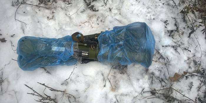 Кроме того, на придомовой территории одного из частных жилых домов пгт Станица-Луганская правоохранители изъяли из схрона три гранатомета РПГ-26, противопехотная мина ОЗМ-72 и патроны калибра 12,7 мм. В лесополосе возле села Бугас Волновахского района сотрудники СБУ изъяли из тайника три танковых снаряда калибра 125 мм, 4 выстрела ПГ-9 к противотанковому гранатомету, гранатомет РПГ-22; 200 выстрелов ВОГ-17 к автоматическому гранатомету, 250 снарядов к пушке калибра 30 мм и 10 000 патронов различного калибра.