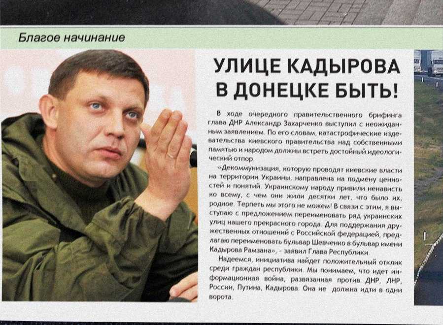 Александр Захарченко, вождь виртуальной республики, выступил с инициативой переименования бульвара Шевченко в улицу имени Рамзана Кадырова.