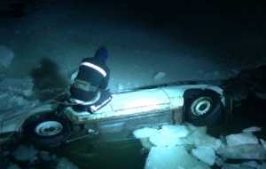 Спасатели прибыли на место происшествия, где обнаружили машину, которая почти полностью ушла под лед, приблизительно в четырех метрах от берега.