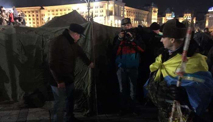 Возле столичного монумента Независимости в Киеве активисты установили большую армейскую палатку. Со сцены призывают обеспечить активистов горячим чаем и «буржуйками», поскольку они останутся ночевать. Бойцы АТО требуют всеобщей мобилизации в стране.