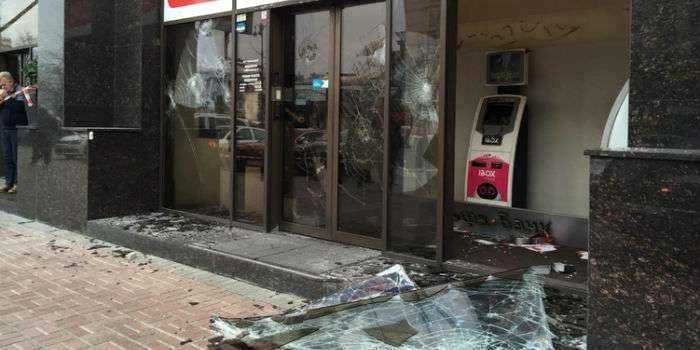 Напомним, что в центре Киева активисты забросали камнями одно из отделений Сбербанка России, которое находится недалеко от станции метро «Арсенальная» и облили его зеленкой. Как сообщили украинские СМИ, акцию провели представители организации ОУН Николая Коханивского. Во время проведения акции здание взяли в кольцо сотрудники правоохранительных спецподразделений.