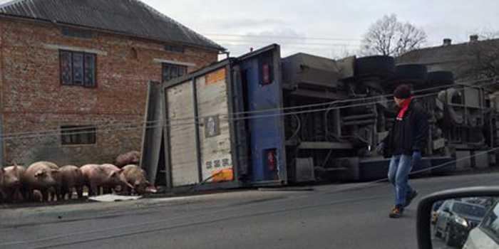 Как рассказали в пресс-службе Госслужбы по чрезвычайным ситуациям, в Жидачевский райотдел полиции сообщили о том, что в селе Соколовка перевернулся грузовик, который двигался в Жовкву. В фуре находилось 200 свиней.