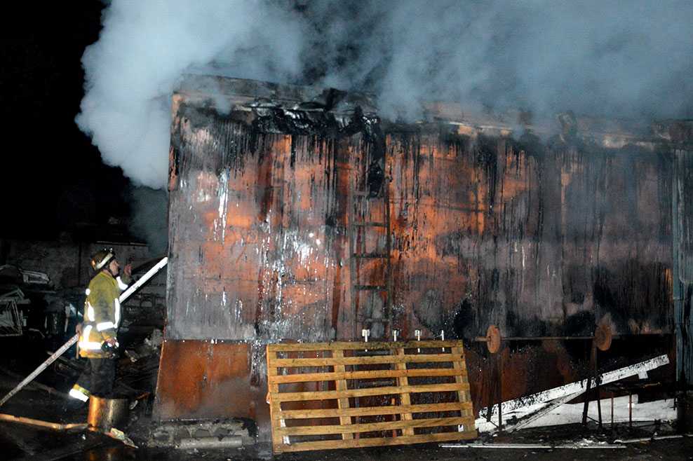 Огнем повреждены транспортные средства, автомобильные прицепы, складской ангар размером 30 х 50 метров на площади 35 квадратных метров, железнодорожный контейнер, на площади 15 квадратных метров, железнодорожный пассажирский вагон, эксплуатируемый под склад. Из данного вагона спасателями было вынесено около 50 углекислотных баллонов и 70 кег.