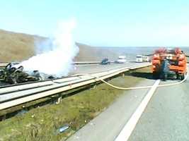 По предварительным сведениям, причиной аварийной ситуации на участке дороги в Одесском регионе стала потеря водителем легковушки BMW-328 управления. Двигаясь на высокой скорости, машина буквально влетела в отбойник, вырвалась на "встречку" и загорелась.