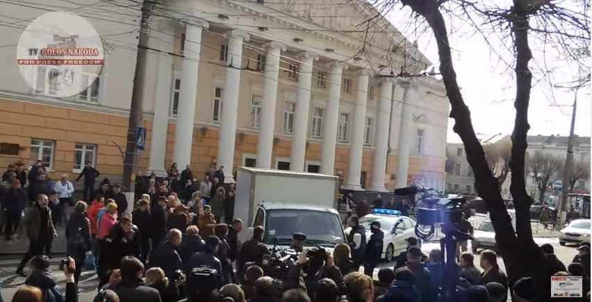 Во время протестов в Виннице 10 марта не обошлось без старых милицейских трюков. Когда митингующие приняли решение перекрыть дорогу возле полицейского управления, один из водителей совершил наезд на пешеходов.