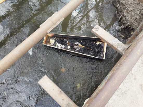 В Харькове не мало шуму наделали фотографии плавающего по местной реке Немышля гроба якобы с останками трупа. Сотрудники коммунальной службы достали жуткую находку в районе улицы Искринской и успокоили: человеческих останков в нем не было, а только сожженная бумага и тряпье.