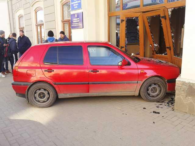 17 марта возле Коломыйского городского совета собралось несколько сотен людей. Все хотели посмотреть на необычную аварию. В центральный вход ратуши заехал красный автомобиль "Volkswagen Golf".