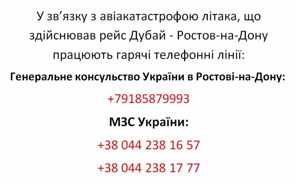 По информации Генерального консульства Украины в Ростове-на-Дону в результате катастрофы самолета Боинг 737-800, который выполнял рейс из Дубаи в Ростов-на-Дону, погибли восемь граждан Украины.