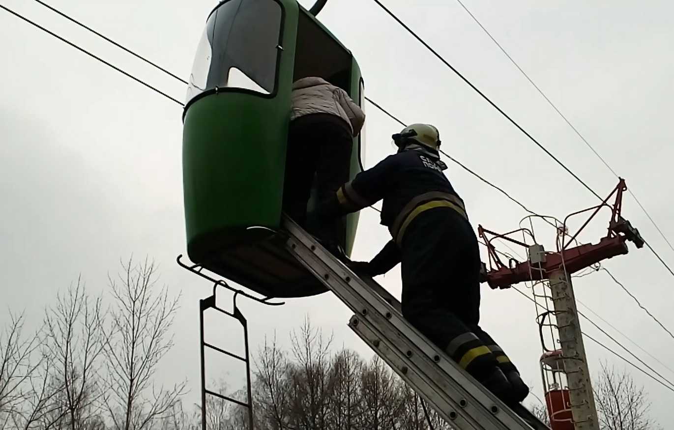 Одна из кабинок, в которой находились двое людей, зависла над болотистой местностью на высоте около 10 метров. Из-за сложности рельефа и особенности поверхности местности применить имеющиеся технические средства для спасения людей было невозможно. Поэтому руководитель спасательной операции вызвал дополнительно специальную группу спасателей верхолазов Национального университета гражданской защиты Украины.