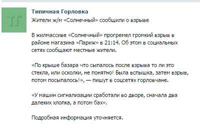 «По крыше базара что-то сыпалось после взрыва то ли это стекла, или осколки, не понятно! Была вспышка, затем взрыв, потом посыпалось!», — пишут в соцсетях горловчане.