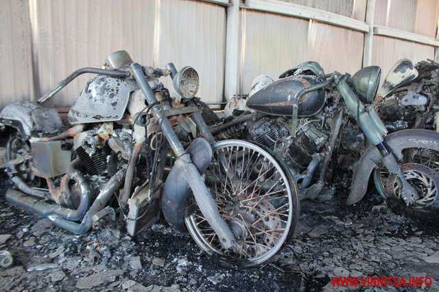 Ночью 6 апреля в с. Лукашовка Литинского района Винницкой области сгорел ангар площадью почти 700 кв. м с техникой. Владелец убежден что это месть конкурентов и поджог. Мотоциклы и трактора, которые были в ангаре выгорели дотла.