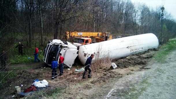 В Черкасской области перевернулась фура с сжиженным газом.