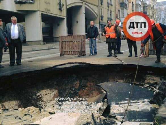 В Киеве сегодня утром произошло ЧП на ул. Бульварно-Кудрявской (бывшая Воровского). Там на участке между Тургеневской и Гоголевской произошел масштабный провал проезжей части.