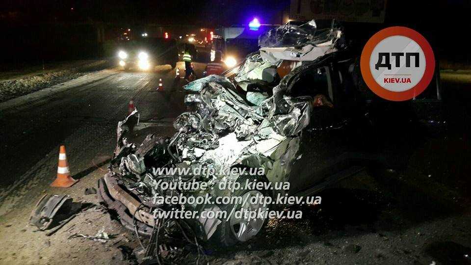 "Работаем на месте жуткого смертельного ДТП под Киевом на Новообуховской трассе: Тойота Ленд Круизер на полном ходу врезался в мусоровоз. Двое парней в авто погибли мгновенно. На месте спасатели гсчс, две бригады скорой, опергруппа и эксперт", - сказано в сообщении.
