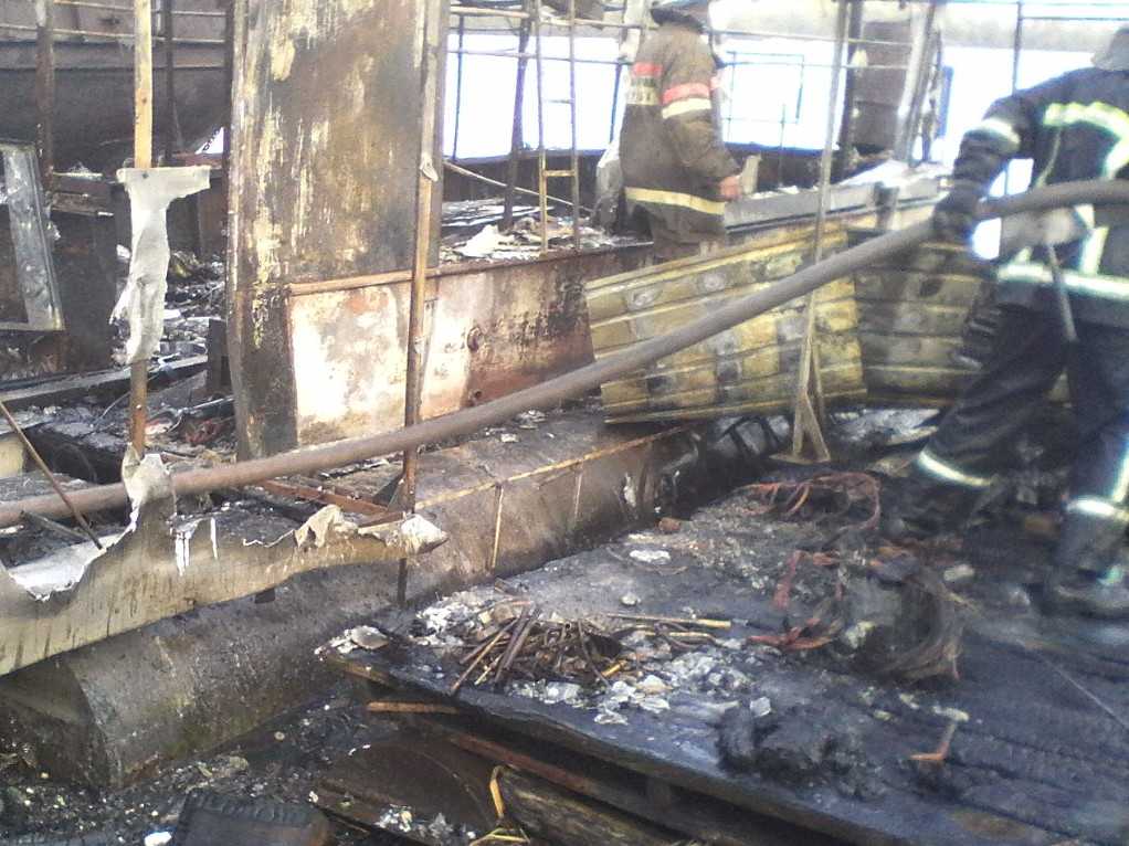 Вследствие пожара сгорело и разобрано 75 кв.м конструкций, поврежден каркас плавсредства, деревянная кровля и бытовые вещи.