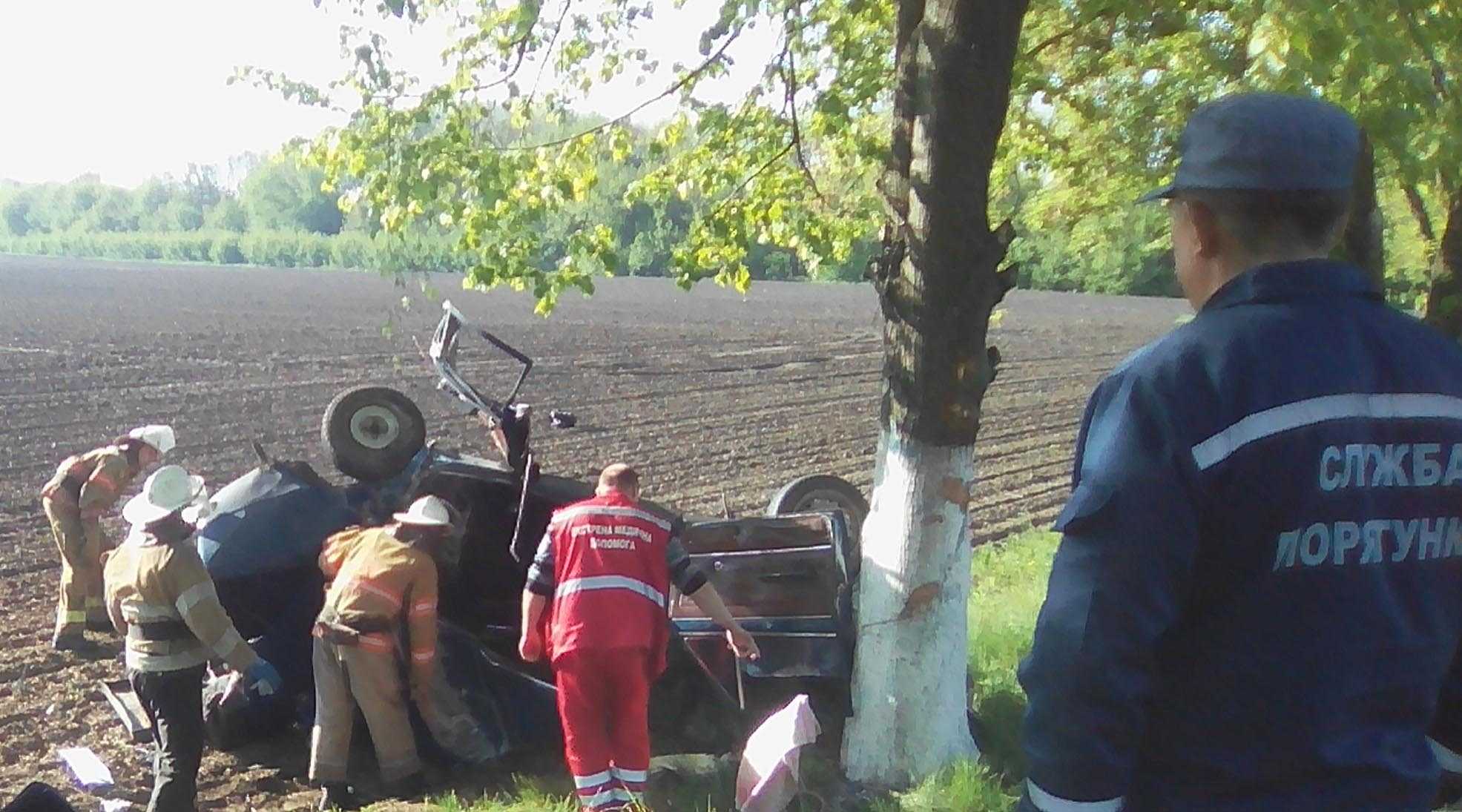 На место происшествия было направлено спасателей 18-ДПРЧ пгт Ракитное. По прибытию на место выяснилось, что в результате неудачного маневрирования водитель автомобиля ВАЗ 2101 потерял управление и совершил столкновение с деревом. В результате столкновения погибли два человека, пострадали водитель и два пассажира, которых было заблокировано в автомобиле ВАЗ 2101. Спасатели с помощью немеханизированного аварийно-спасательного инструмента деблокировали пострадавших и передали медикам Рокитнянской ЦРБ. Пострадавшие находятся в центральной районной больнице с травмами различной степени тяжести.