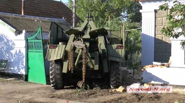 В поселке Терновка в Николаеве в воскресенье, 8 мая, военный автомобиль «Урал» разрушил ворота, въехал во двор частного дома, где снес летнюю кухню.