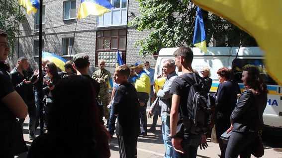 Более 20 представителей общественных организаций пришли к административному зданию Славянского отдела полиции и требовали отпустить молодого человека. Как оказалось парень, у которого правоохранители обнаружили шприц с зеленкой - активист одной из общественных организаций.