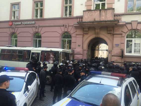 По информации местных СМИ, акцию устроили члены националистических группировок «Сокіл», «Карпатська Січ», «Білі горвати», ОУН и Правого сектора. Как утверждает глава львовского «Сокола» Богдан Федун, сотрудники полиции зверски избили активистов, в том числе по голове и туловищу.