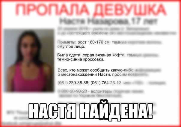 17-летнюю Настю Назарову нашли, с девочкой все в порядке. Об этом в соцсетях сообщили координаторы поиска.