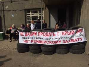 У здания активисты развесили плакаты: “Старый цирк – наш второй дом”, “Не дадим продать старый цирк. Карандеев и Дилдык, руки прочь от старого цирка! Нет рейдерскому захвату”, “Мы не отдадим им наш старый цирк!”.