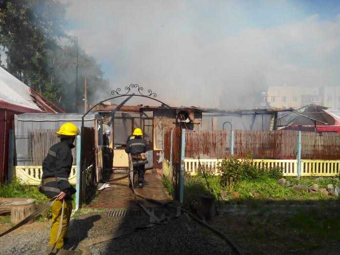 Прибыв на место происшествия, спасатели выяснили, что горят деревянные конструкции, холодильник и облицовка хозяйственной постройки кафе на площади 32 кв.м.