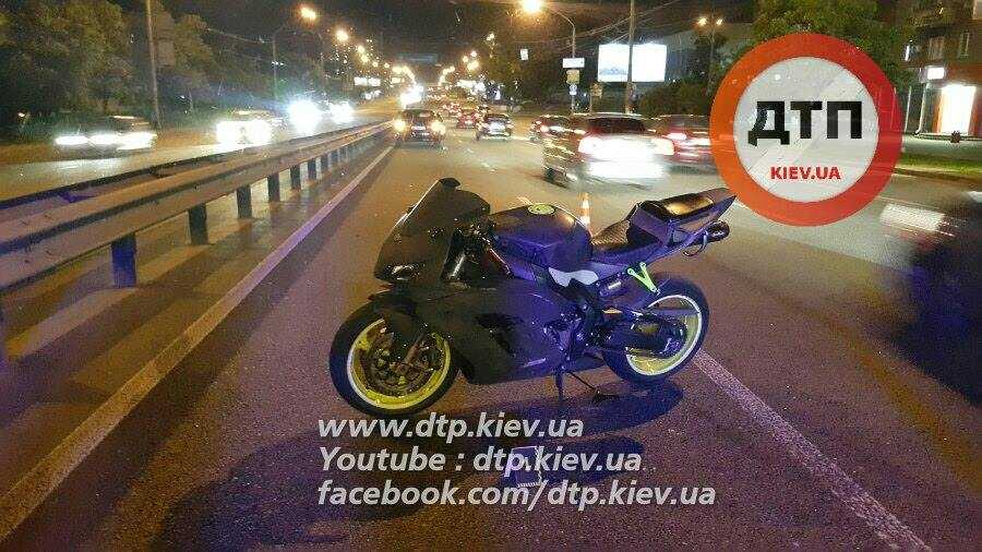 В Киеве произошло ДТП, в результате которого байк влетел в автомобиль. Благодаря экипировке удалось избежать жертв.
