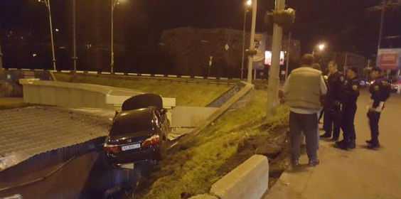 По словам полицейских, они увидели автомобиль "Honda", который быстро двигался, а потом услышали удар. Как оказалось, автомобиль врезался в отбойник, снес его и упал на крышу киоска.