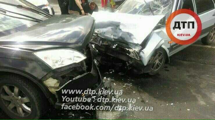 В Киеве произошло лобовое столкновение двух автомобилей. С тяжелыми травмами госпитализирован водитель одной из машин.