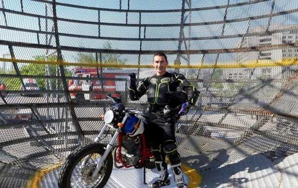 Украинский каскадер Александр Турчанинов совершил на мотоцикле "мертвую петлю" внутри металлической сферы.