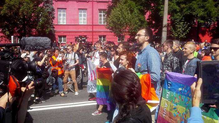 Стоит отметить, что далеко не все киевляне восприняли мероприятие с радостью. Очевидцы сообщают, что параллельно с колонной «Киев-Прайд» идет колонна протестантов, которые выступают против проведения таких мероприятий.
