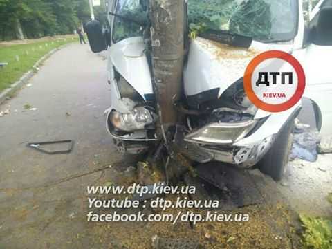 "ДТП в Киеве на Голосеевском проспекте: водитель микроавтобуса уснул и врезался в столб. Девять пострадавших. На месте работает патруль полиции", - сказано в сообщении.