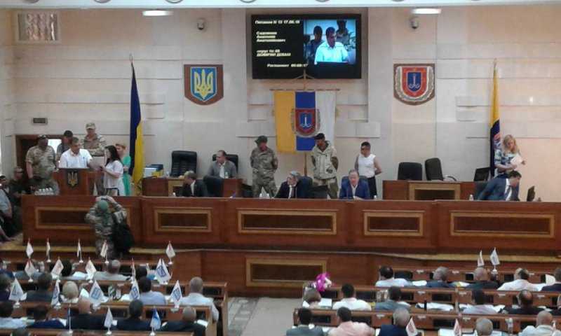 В рузультате люди в камуфляже прорвались в ОГА, разбив стекло на входной двери, и зашли в сессионный зал, потребовав у депутатов проголосовать за признание добровольцев участниками боевых действий.