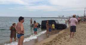 При этом у водителя джипа ничего не вышло - он застрял в морском песке.
